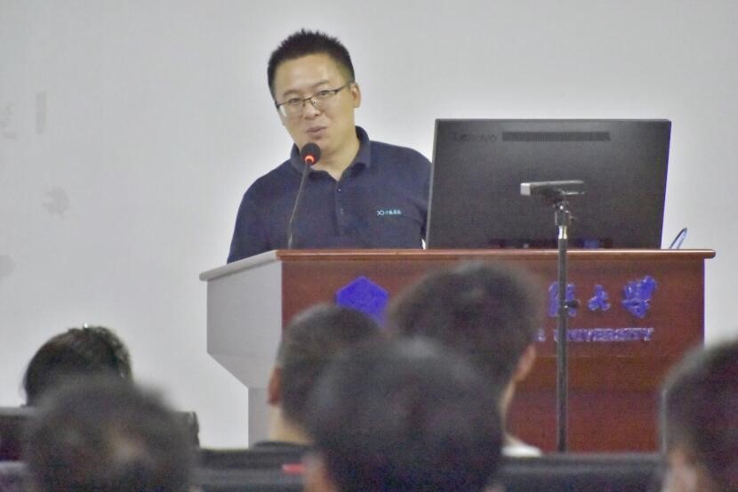 来自00级的校友、小鱼易连武汉研发中心总经理张成华发表以“成就更好的自己”为主题的发言。用幽默风趣的语气为新生们讲述他与纺大的故事,希望大家永远怀揣梦想,创造社会价值。在此过程中与同学提问互动,为正确回答问题的同学赠送礼品,现场的气氛活跃了起来。