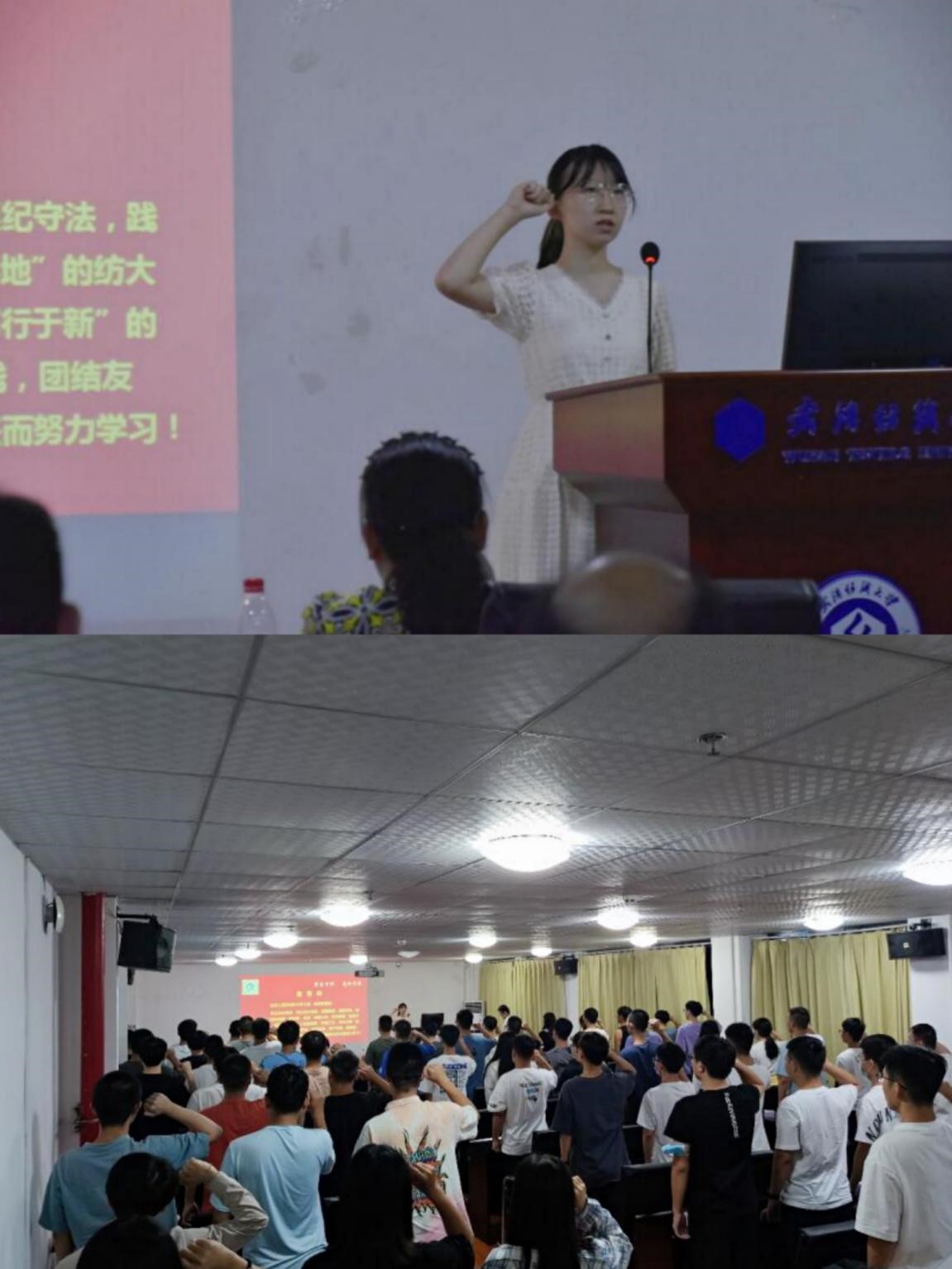 20日晚18:30,男同 2021级开学典礼于崇真楼(南楼)8个教室顺利举行。为响应疫情防控,学院采用线上线下相结合的方式开展此次盛会。院领导胡新荣、胡红辉、何儒汉、魏雄以及系主任、2021级新生班主任、辅导员,以及2021级全体本科生、研究生全员参与,会议由涂耀威副书记主持。典礼邀请院领导、校友以及学生代表讲话,举行了入学宣誓,开启纺大新生活。