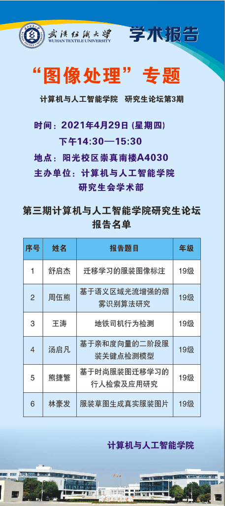 在这次的“人工智能与大数据”专题中,六位同学分别从模型中融入注意力机制对其进行改进的机理、几种模态分解与时间序列模型相结合(如EMD-TCN,EEMD-TCN等)后在云平台集群负载预测中的应用、步态识别情感领域中的不足、智能消防服的柔性传感单元制备方法、网络安全的重要性研究路线、迁移学习解决了语音数据难以获取和跨语料库识别问题这些方面介绍和分享了自己研究的相关工作。同学们积极提问,认真讨论交流学习。