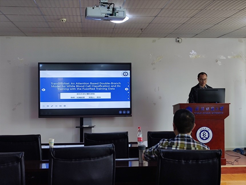 陈华博士的报告题目为《基于注意力的双分支网络用于白细胞分类》,报告指出在医学计算机视觉领域中白细胞样本的不足和不平衡仍然是智能和准确分类白细胞的挑战,介绍了一种TransMixNet网络结构,用于建立WBC识别的分类模型。