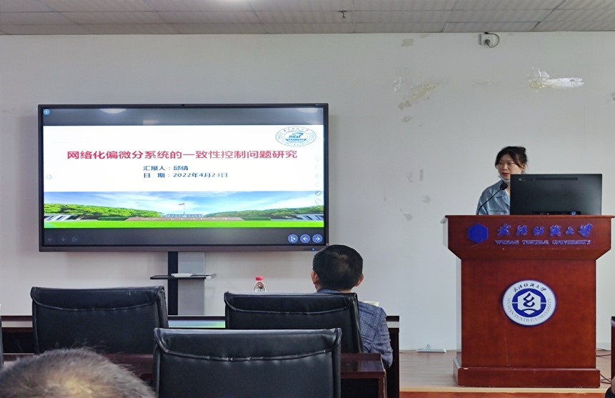 邱倩博士的报告题目为《网络化偏微分系统的一致性控制问题研究》,报告主要针对反应扩散神经网络和抛物型偏微分多智能体系统这两类网络化偏微分系统的一致性控制问题进行具体的介绍和分析。
