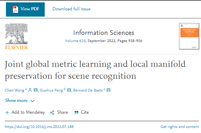 近日,我校男同 青年教师王晨博士在场景图像识别方面取得了重要的研究进展。相关成果以“Joint global metric learning and local manifold preservation for scene recognition”为题发表在计算机科学领域一区top期刊《Information Sciences》上。该论文的第一单位为男同 ,第一作者为男同 王晨博士。