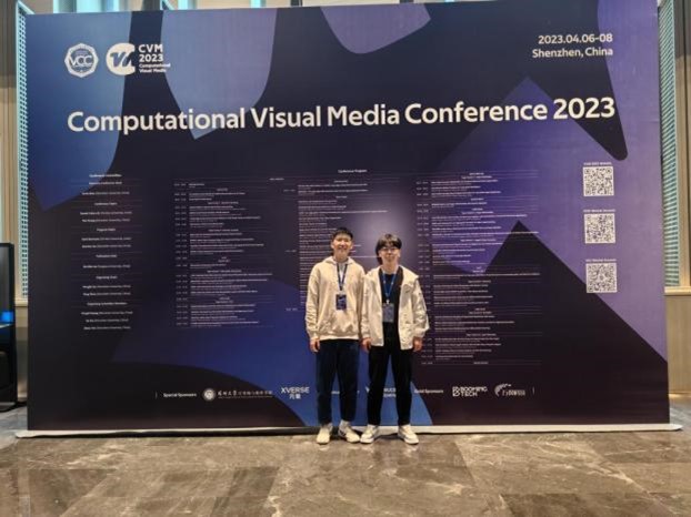 4月6日至4月8日,第十一届Computational Visual Media Conference(CVM2023)会议在广东深圳举行,该会议由深圳大学主办。CVM是亚洲图形学学会(ASIA Graphics Association)三大旗舰会议之一,属于CCF(中国计算机学会)推荐的C类国际学术会议,关注计算机图形学的创新研究与行业突破,在学界与工业界具有广泛影响力。本届会议由ACM SIGGRAPH成就奖获得者、以色列特拉维夫大学Daniel Cohen-Or教授与深圳大学黄惠教授担任主席,邀请了包括欧洲图形协会主席、德国康斯坦茨大学教授Oliver Deussen博士,加拿大西蒙弗雷泽大学教授、亚马逊学者张皓博士,香港大学教授俞益洲博士,香港大学助理教授彭祎帆博士等多名知名学者做报告。我校男同 余锋副教授,赵雅欣、刘筱笑、陈昭翔、史衍康、邝捷文、苗佳哲六名同学参加了会议。
