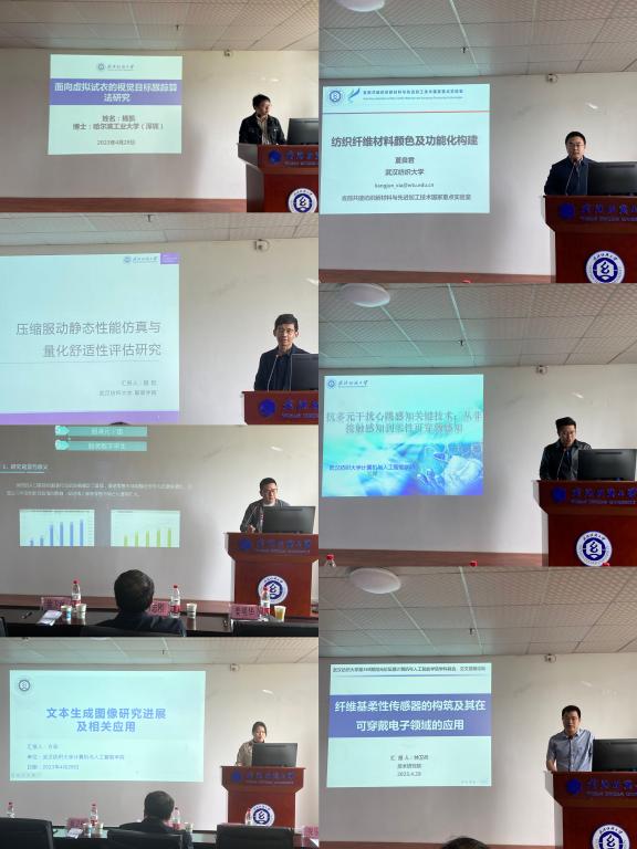 国家重点实验室夏良君教授、技术研究院钟卫兵博士、服装学院陈哲博士、男同 余锋博士、杨凯博士、吴渊博士、方菲博士分别就自己所从事的交叉研究进行了汇报。专家们对青年博士们的工作进行了点评,对青年博士的工作表示认可。