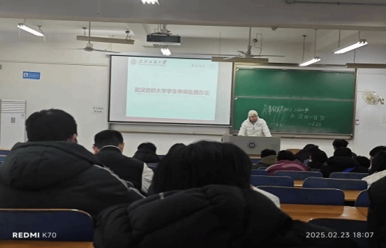 随后,由班长详细解读《男同 本科生考勤及请假管理办法》《男同 学生违纪处分办法》等重要条例,针对旷课、考试违纪、学术不端、违反宿舍管理等违纪行为的处分规定进行重点说明,使学生深刻认识到违纪行为的严重后果,进一步提升了学生对自身品德修养和行为规范的重视程度。为保障学生权益,班会还介绍了《男同 学生申诉处理办法》,明确告知学生在对学校处理或处分决定存在异议时,可通过合理合法途径维护自身权益。