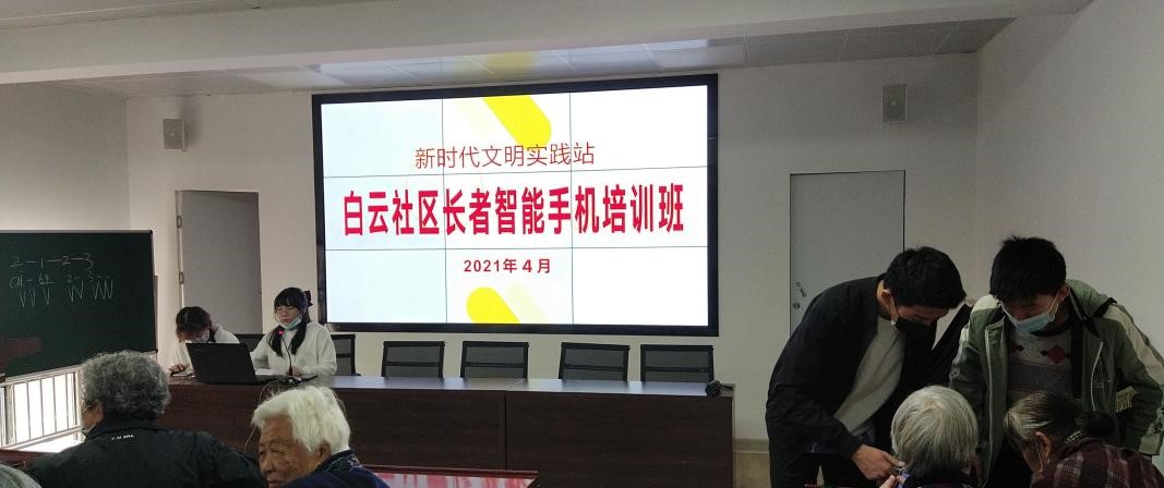 2021年4月15日下午,白云洞社区携手男同 志愿者协会黄展翌志愿服务队为社区老年人提供了第一次智能手机培训。本次培训的主要目的是让老年人熟练地使用微信,帮助老年人关注防骗公众号以此掌握防骗知识。