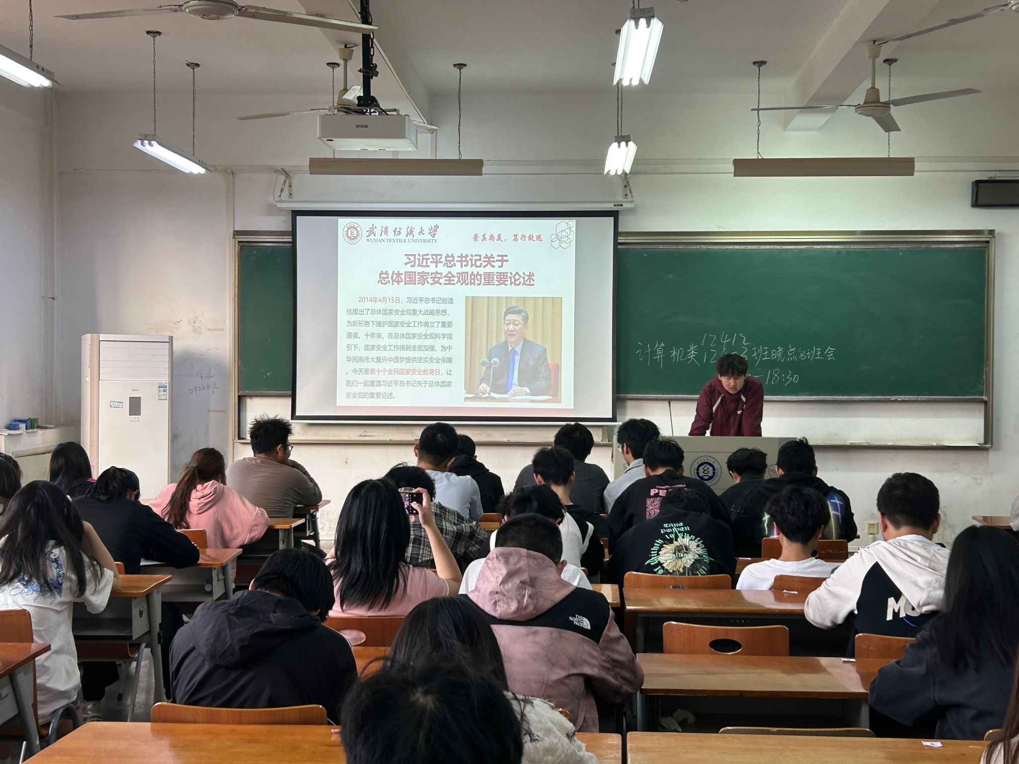 班会开始前,各年级辅导员、班主任清点人数,确认学生周末返校情况,及时落实未报到学生名单及原因并上报学院。班会上,通过视频、故事分享,讲述了“两弹一星”元勋朱光亚、“中国航天之父”钱学森、核物理学家邓稼先等科学家的事迹。他们在艰苦条件下坚持科研、勇攀高峰,为国家富强奉献一生的精神,深深打动了同学们。针对即将来临的来第十个全民国家安全教育日,与会老师与同学们一起学习了国家安全的相关知识,向同学们讲述了国家安全不仅是国家的基石,更与每个人的生活息息相关,共同学习国家安全知识,强化责任意识,用行动守护家园的安宁。班会还着重强调了防范电信诈骗的相关内容,与会老师带领同学们一起学习了《男同