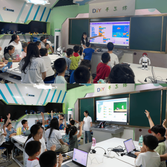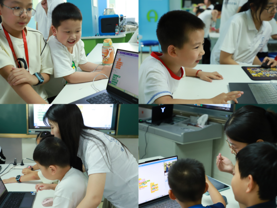 “我按下 1、2、3、1 的时候真的弹出了《两只老虎》的旋律,好神奇!”“我的海洋馆里不知有小鱼,还有许多螃蟹和章鱼!” 孩子们兴奋的话语,充分展现出此次课程的趣味性与实用性。此次课程不仅让孩子们掌握了编程指令和逻辑思维,更在音乐与代码、自然科学的交融中,让他们体验到了创造的乐趣与成就感。
