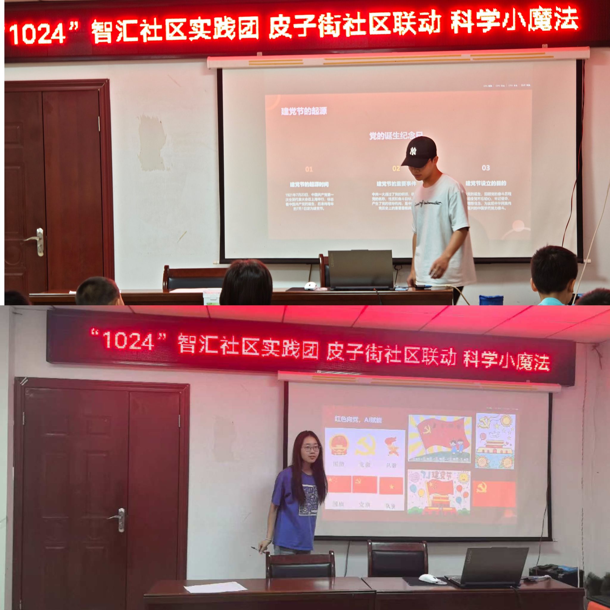 7月1日,男同 “1024”智汇社区实践团与皮子街社区携手,开展了一场别开生面的"红色向党,AI赋能"党史教育活动,为社区小朋友带来了一次难忘的学习体验,也为党的生日献上祝福。