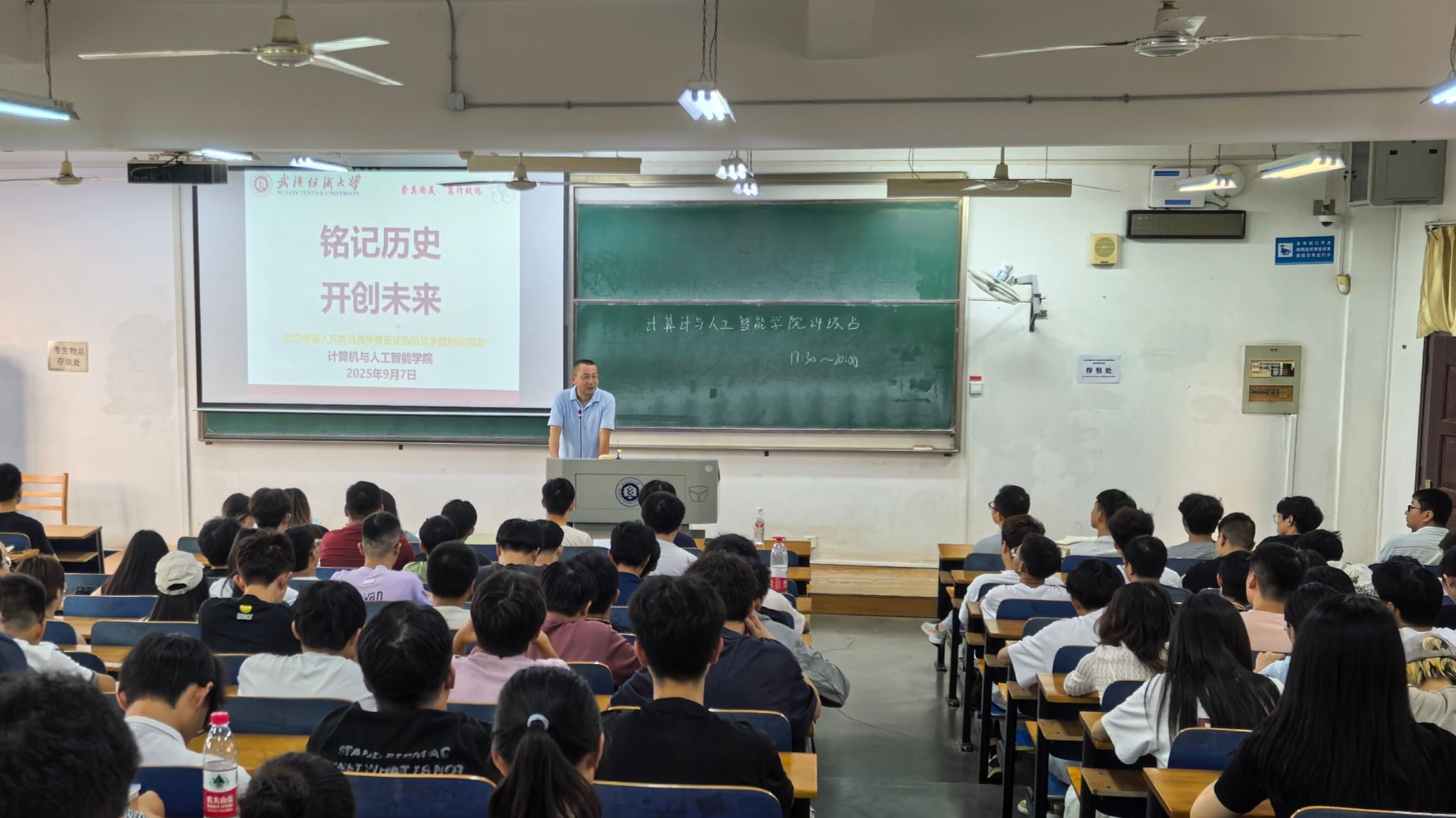 晏伟总结讲话中寄语全院学子:同学们,希望你们铭记历史、缅怀先烈,弘扬伟大抗战精神;用奋斗传承信仰,潜心钻研、矢志创新,努力成为计算机领域拔尖人才,为强国复兴伟业贡献青春力量!