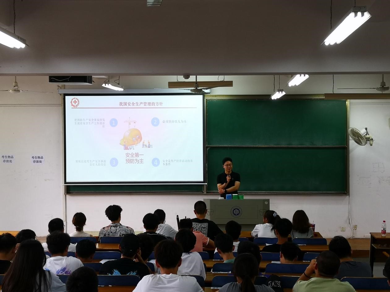 会上,辅导员许超带领大家认识校园安全隐患,其中包括用电安全,盗窃,防骗,交通安全等,介绍了什么是“安全生产月”,要做到落实安全责任,推动安全发展,希望全体学生通过此次班会掌握安全知识,培养“珍爱生命,安全第一”的思想。在大会中,还讲述了我国安全生产管理的方阵,“安全第一,预防为主”,“安全是生产经营活动的基本条件”。