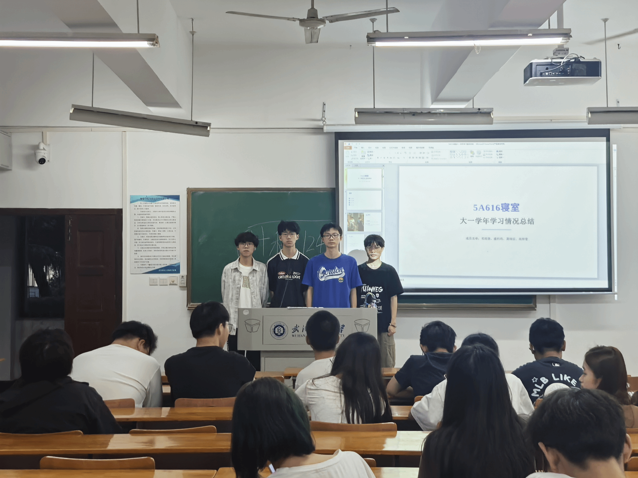 会议伊始,学习委员李炫简要介绍了总结会的目的与流程,强调通过回顾过往、交流经验,为班级新学期的整体进步奠定基础。随后,各寝室代表依次上台,结合PPT展示,围绕学习情况、生活管理、活动参与及未来计划等方面进行分享。