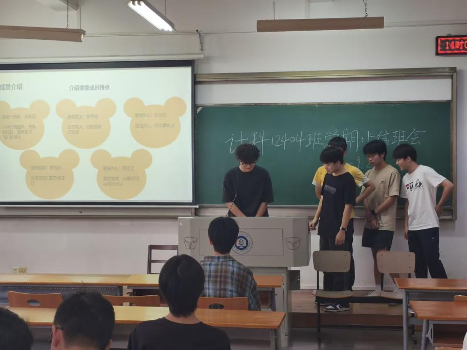为全面总结班级建设成果,促进寝室间学习交流,9月26日下午,计算机类12404班在3号教学楼204教室举行2024-2025学年第一学期总结交流会。本次班会创新采用“寝室长汇报制”,由全班8个寝室的同学依次登台总结。班主任余锋老师和辅导员李港老师共同参与,班会由班长毛超强主持。