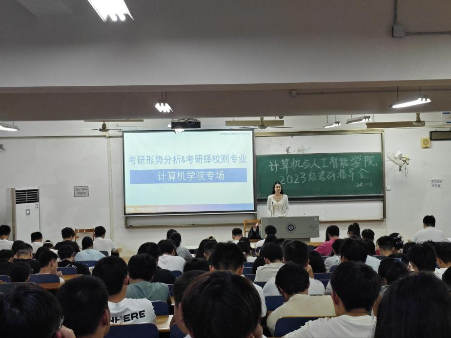 在考研规划讲座中,主讲老师为同学们深入剖析了当前计算机、人工智能等相关专业的考研形势、竞争格局与未来行业发展趋势。结合详实的数据与往届案例,主讲老师系统解读了从院校与专业选择、初试科目备考策略、全程复习时间安排,到网上报名、初试、复试、调剂的全流程关键环节。