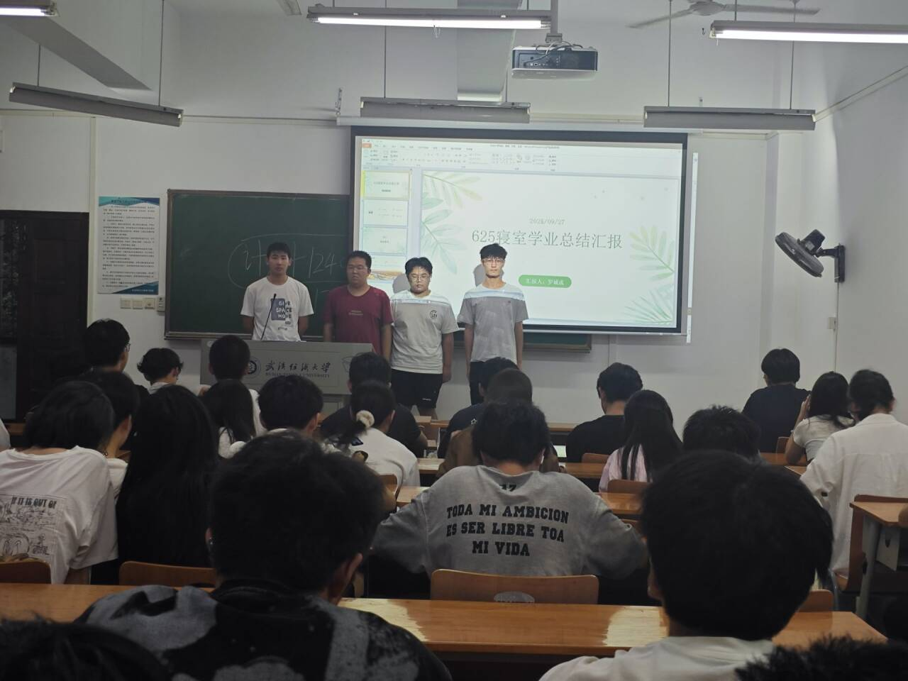 5A625寝室(成员罗诚成、白哲、廖杨、王涵)汇报显示:成员相处融洽、相互支持,罗诚成、白哲无挂科,廖杨、王涵挂科,整体通过率50%;课堂出勤积极但存在学习规划、知识理解问题。多数人参与英语竞赛,罗诚成还参加蓝桥杯,课余运动、做志愿。未来以“全员无挂科”为目标,将互督学习,同时参与户外拓展与志愿活动提升综合能力。