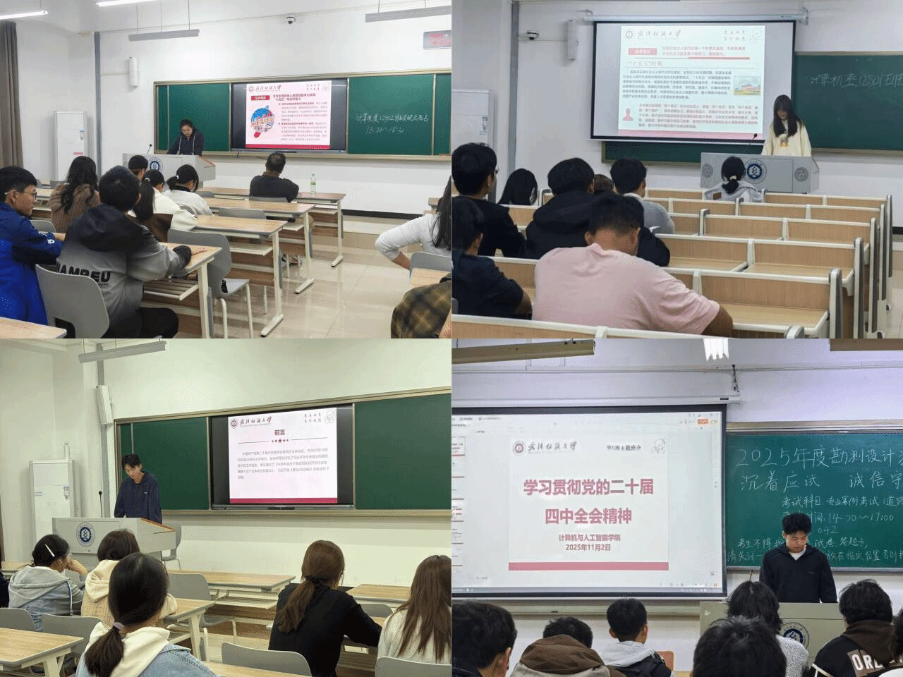 班会伊始,各班首先完成晚点名工作,精准掌握学生返校动态,对未返校同学逐一联系、确认行程,把安全管理落到细节。随后,与会老师与全体同学重点学习了全会公报。现场还同步解读“科技自立自强”“新质生产力”“数字中国”等关键词,引导同学把专业学习与国家战略同频共振。最后,班级发出“青春算法·十五五有我”倡议,号召全体同学制定个人成长路线图,用代码书写强国篇章。