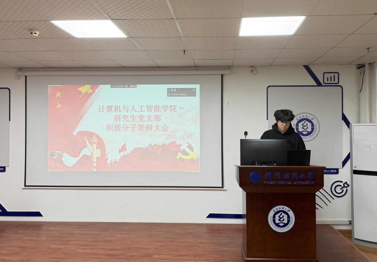 会议伊始,学院研究生党支部高翌涵详细介绍了本次推优答辩的流程规则、评审标准及注意事项,强调本次答辩旨在全面考察入党积极分子的思想觉悟、理论水平、学业科研及社会实践表现,为学院党员队伍建设筛选优秀后备力量。随后,每位入党积极分子依次上台,结合自身成长经历与实际工作,从对党的认识、入党动机、理论学习成果、参与志愿服务及科研项目的情况等方面进行汇报。