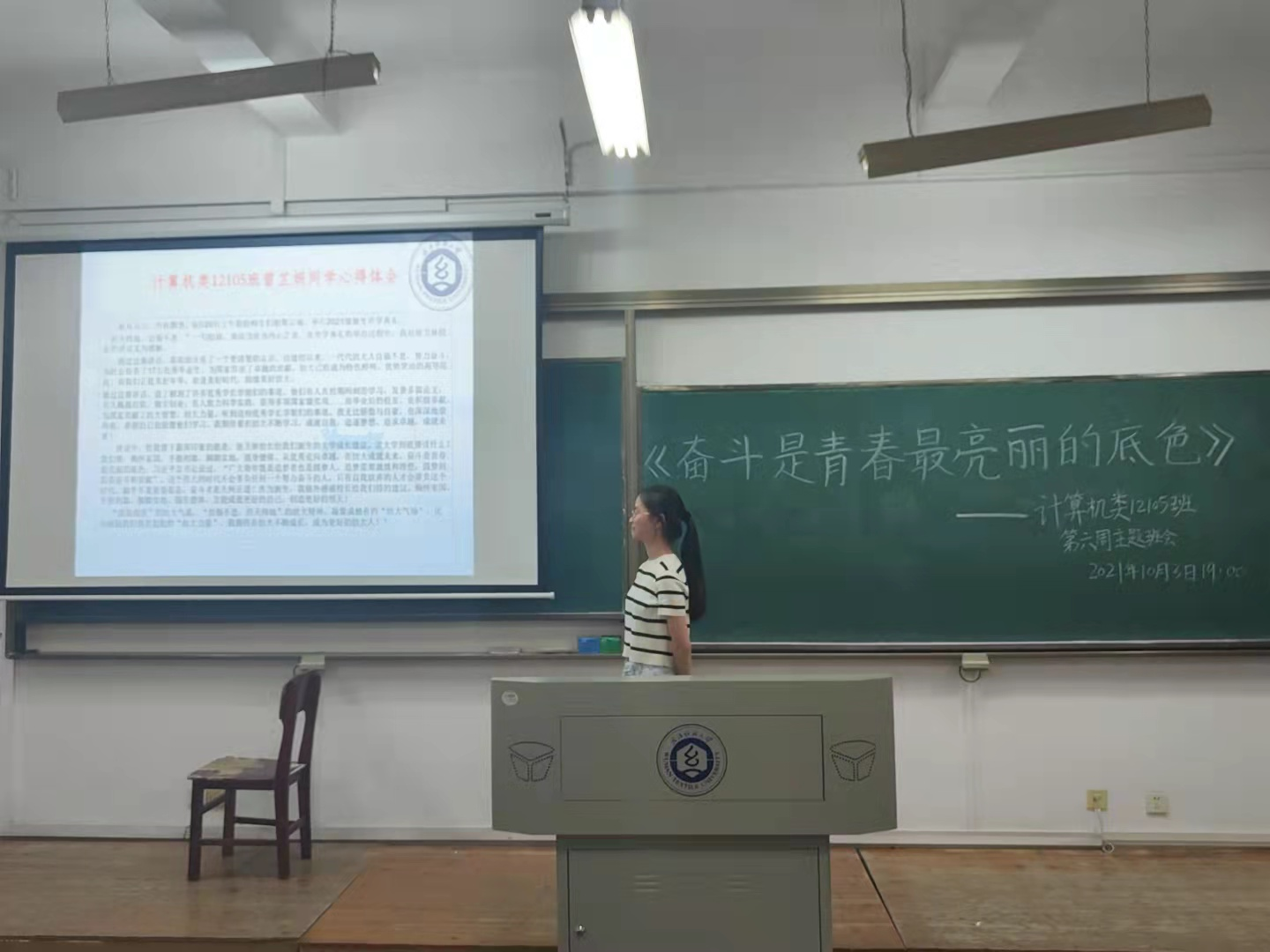 同学们在班会上踊跃发言,表达自己的深刻感悟。计算机类12105班曾芷妍在发言中说道:“给我印象最深的就是徐卫林校长给我们新生的大学成长建议。读大学到底要读什么?我们要胸怀家国,手握利器,脚踏实地,强身健体。从优秀走向卓越,在纺大成就未来。奋斗是青春最亮丽的底色,习近平总书记说过:‘广大青年既是追梦者也是圆梦人,追梦需要激情和理想,圆梦则需要奋斗和贡献。’这个伟大的时代不会辜负任何一个努力奋斗的人,只有自我放弃的人才会辜负这个时代。躺平不是青春姿态,奋斗才是人间正道!作为新生,我非常感谢校长给我们提的建议,胸怀家国,手握利器,脚踏实地,强生健体,方能成就更好的自己,创造更好的明天!”