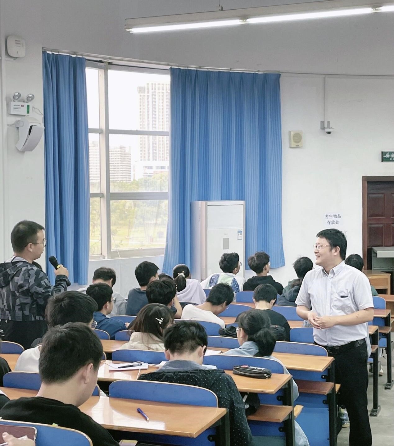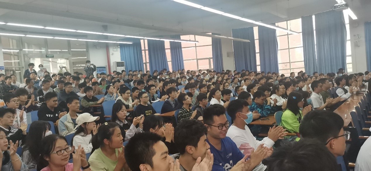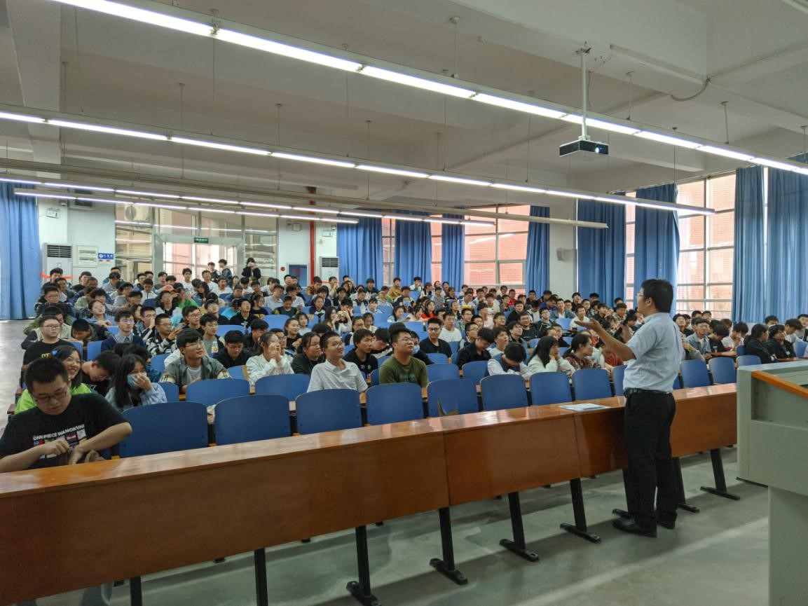 史爱武博士分享了五点经验与要求。首先是规划,他详细谈了有目标与无目标的学生截然不同的生活状态,指出了在当下做好大学四年规划的重要性。“没有规划的人生叫拼图,有规划的人生叫蓝图。”第二,教导同学们要怀有敬畏之心,敬畏知识、敬畏课堂、敬畏师长。第三,教导同学们要有态度,给出了“成功=态度*能力*努力”的公式,向同学们强调态度的重要性,不仅是学习,生活也是如此,做人更是如此。他还向同学们提出了大学最重要的学习方式——自学,和最重要的学习过程——实践,从实操性的角度上向同学们讲述了大学的学习方法。“知而不行,只是未知”,史博士发出殷切期待,希望同学们能把耳朵听到的成为转到手上做到的,做到知行合一。