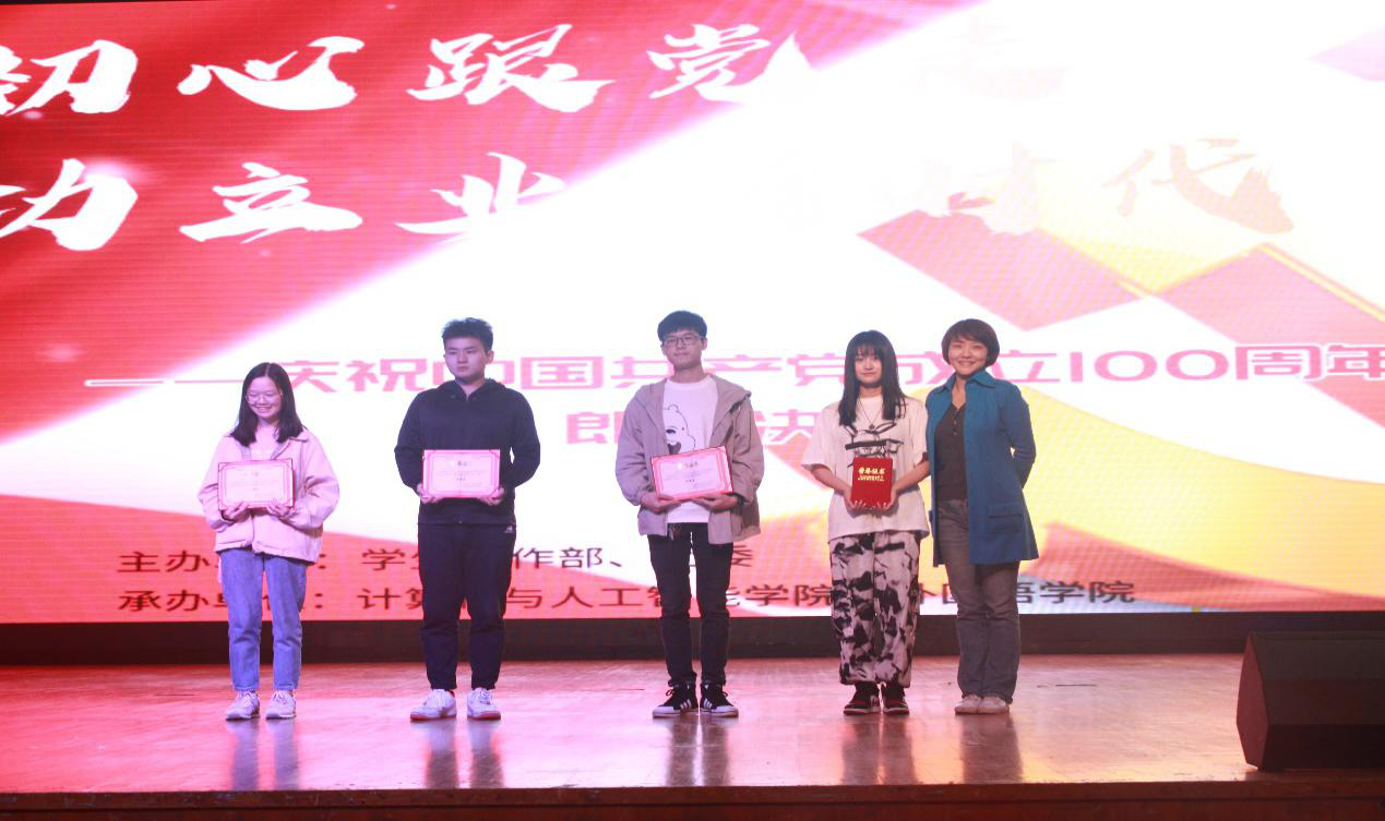 4月21日晚,为庆祝中国共产党成立100周年,学校在阳光校区大学生活动中心举办“不忘初心跟党走 建功立业新时代”朗诵比赛决赛。本次比赛由学生工作部(处)、校团委主办,男同 和外语学院承办。学工部、校团委、外语学院、男同 负责人担任活动评委,各学院学生代表到场观摩比赛。