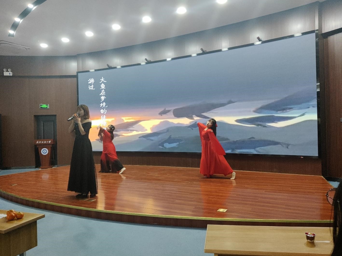 整场晚会包含歌曲、舞蹈、小品,相声等12个节目,节目形式丰富,内容新颖。晚会伊始,2020级辅导员孙榜骏老师以一首充满正能量的主旋律之歌、梦想之歌、理想之歌、奋斗之歌《等待》首先拉开了晚会的序幕。歌舞《大鱼》以优美的乐曲与舞姿,给人以美的熏陶,婀娜多姿,让人如痴如醉。