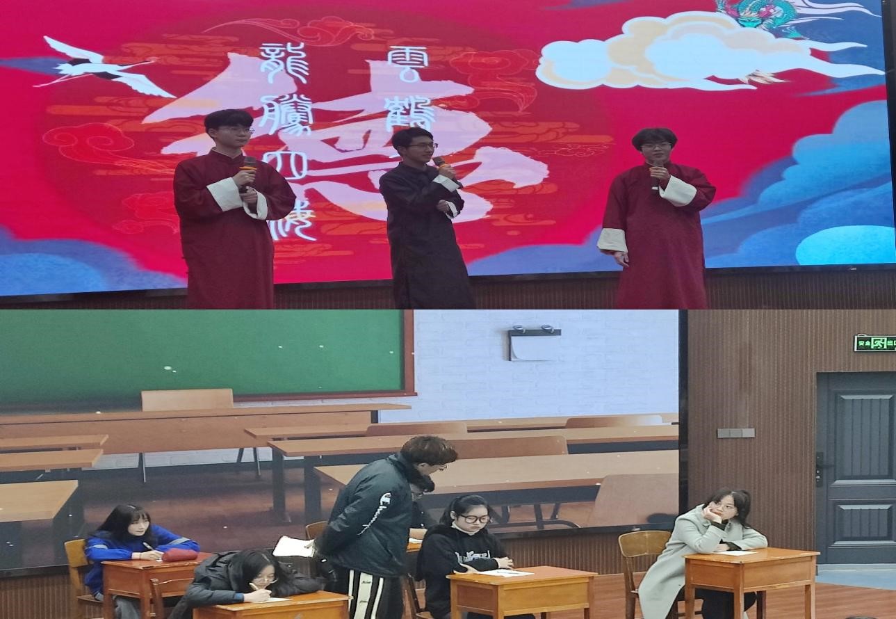 紧扣同学们生活、号召大家诚信应考的小品《监考老师》和配合默契、包袱不断的相声《说一不二》令在座老师与同学们不禁开怀大笑。