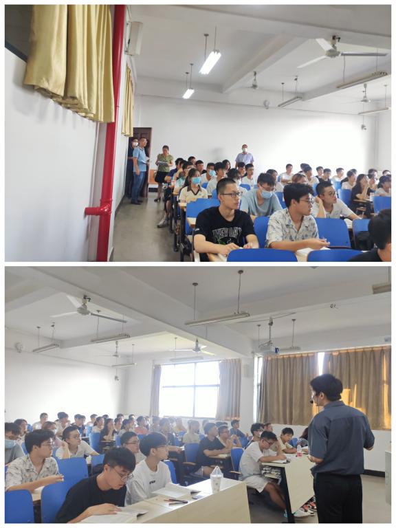 秋意正浓,微风不燥,随着一阵清脆的铃声,迎来了秋季学期开学线下第一课。9月5日上午,男同 院长胡新荣、党委书记晏伟早早来到了3号教学楼入口准备深入课堂,查看秋季学期开学第一课的实况。学院副院长魏雄、党委副书记向涛、2021级辅导员谢瑞清陪同参加。