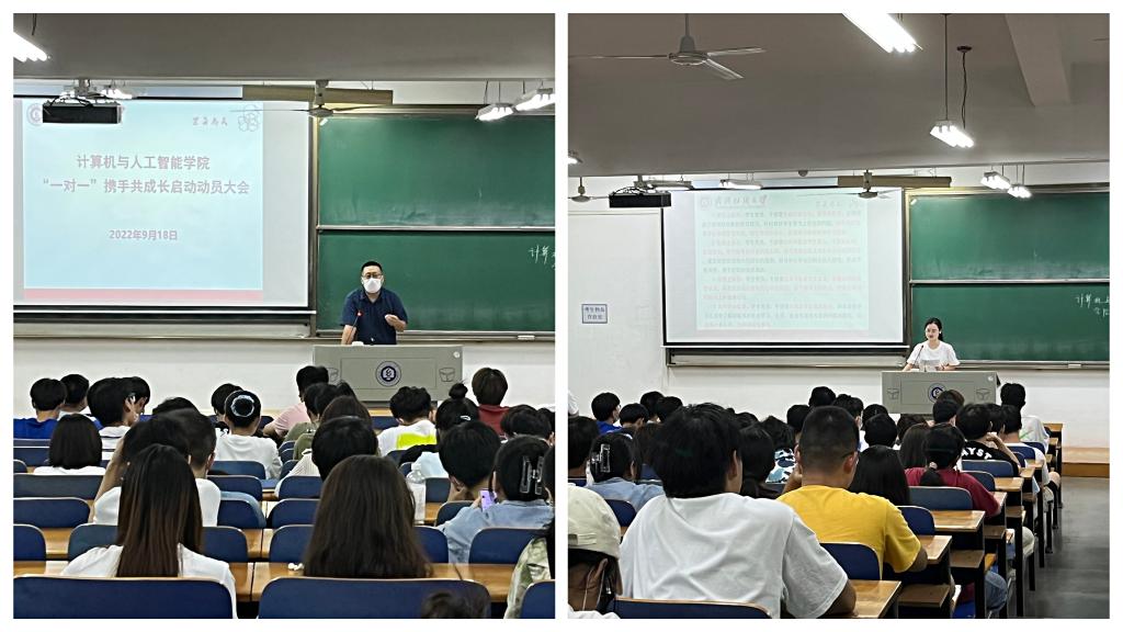 为进一步落实学校关于开展“一对一携手共成长工作”工作要求,推进常态化学生联系服务工作,调动学生党员、学生干部参与重点工作、服务身边同学的积极性、主动性,为同学办实事,办好事、解难事。9月18日班会晚点名时间,男同 在3号教学楼召开了“一对一”携手共成长启动动员大会。各年级分批次、分时段有序开展,学院党委副书记向涛、各年级辅导员及全体学生参会。
