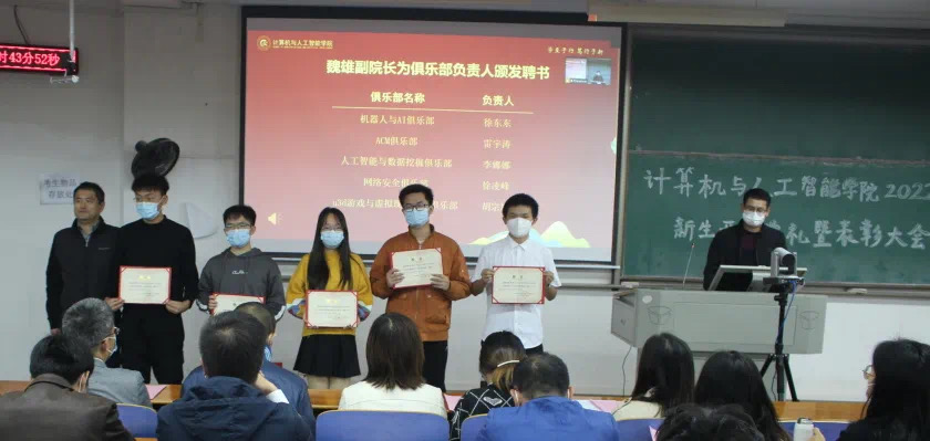 潘雄、叶鹏、李丽、陈佳四位老师分别为创新之星、创业之星、公益之星、社团之星、实践之星、进步之星、体育之星、文艺之星、学习之星和管理之星等十类“计智之星”颁发荣誉证书。