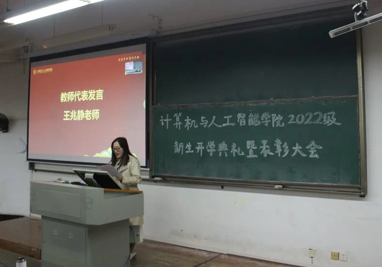 “有这样一群人,他们于名校博士毕业,是同学们努力奋斗的标杆,学习路上的榜样……”,晏伟在全体师生的期待中隆重介绍了2022级新生班主任。并提出了两点希望,一是对学生而言,要以班主任为榜样,自我管理、自我规划、自我成长,读好有字书,悟透无字经,成国之栋梁。二是对班主任而言,希望大家恪尽职守、乐于奉献,将自己成长进步的感悟与同学们充分分享,成为同学们大学生活的第一任专业导师、成长导师。