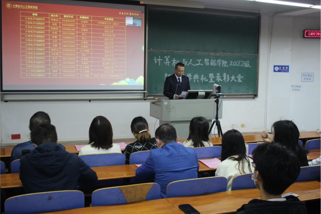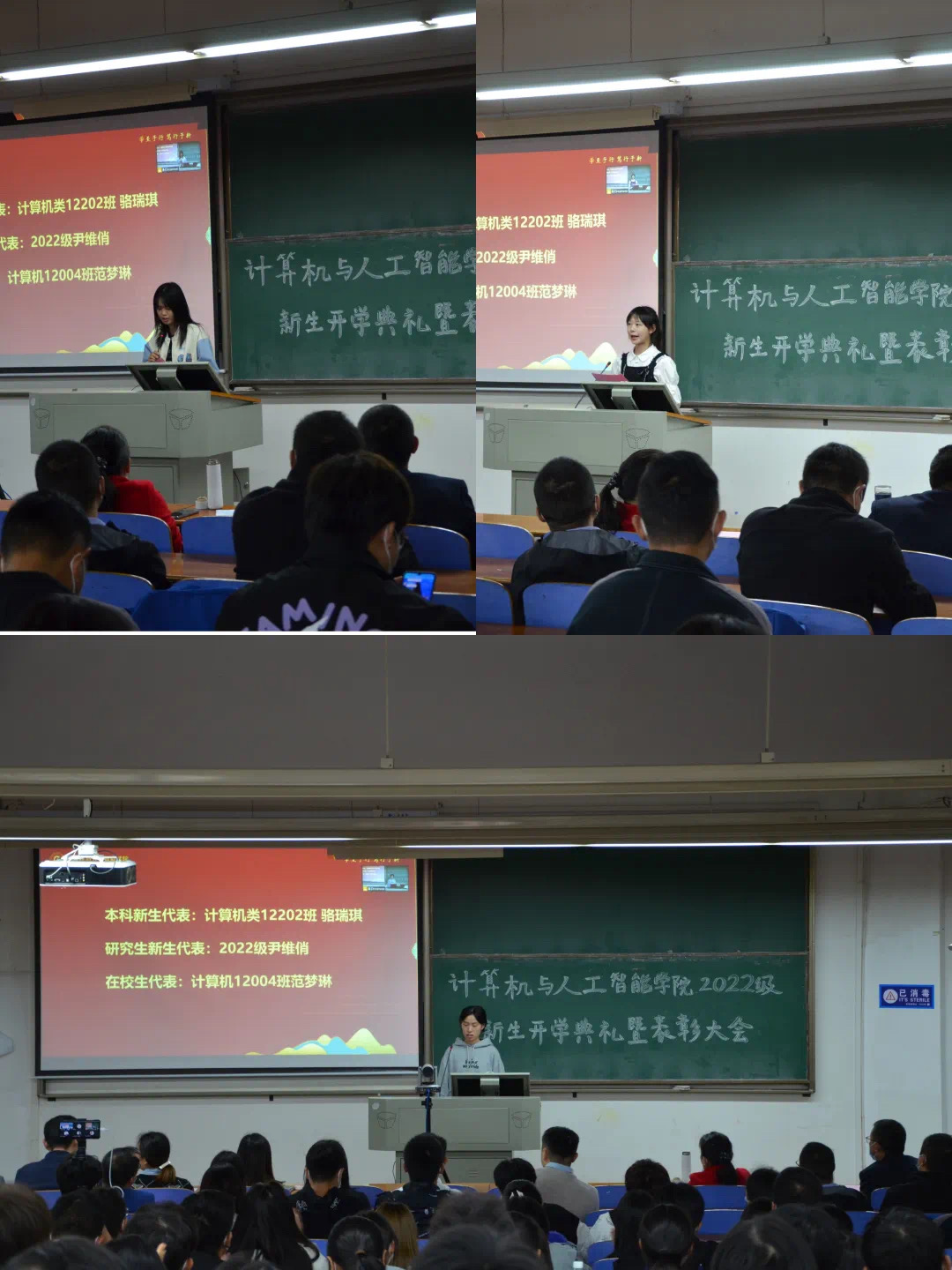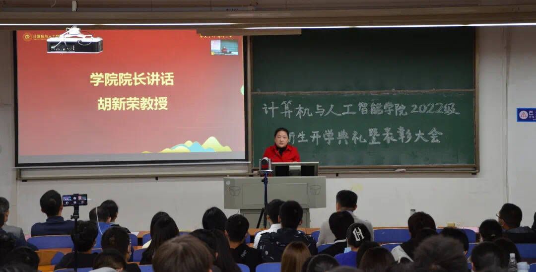 10月9日下午,男同 在3号教学楼T102主会场,116室、117室、118室分会场举行2022级新生开学典礼暨表彰大会,500多名本科生、研究生及留学生新同学在这里正式开启了大学新生活。院长胡新荣、院党委书记晏伟、副院长魏雄、彭涛、党委副书记向涛、软件工程系主任叶鹏、计算机系主任陈佳、人工智能系主任李丽出席典礼。学院各系副主任、2022级新生班主任、辅导员、老生代表,全体2022级本科生、研究生参加典礼。典礼由向涛主持。