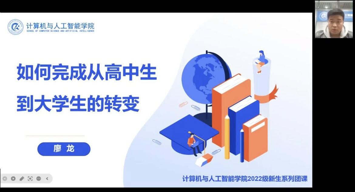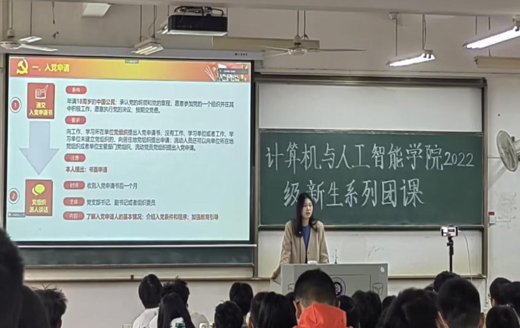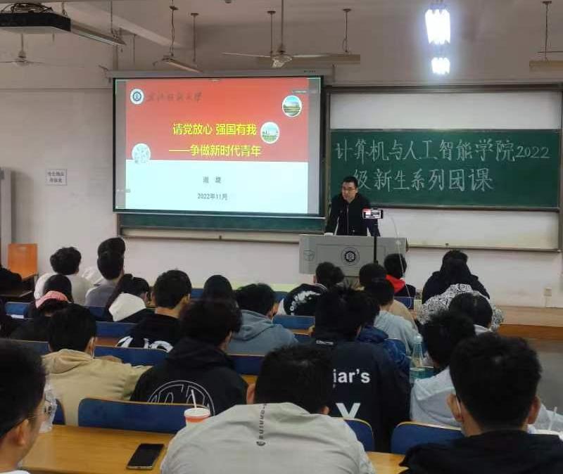 向涛副书记作新生团课报告,他简要介绍了男同 2022年青年马克思主义者培养工程院级团校课程安排和学院团委的组织架构情况,并从第二课堂、基层团建、青年大学习、推优入党等方面介绍了团学工作内容,向同学们展示了学院团学组织开展的多彩缤纷校园活动。同时,向书记寄语计智学子,生逢其时当珍惜难得机遇,要肯于坚持、不断学习,勇于创新、拼搏自信,将个人成长成才融入国家发展的需要中。
