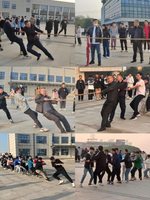 拔河比赛作为一项极其考验成员间合作能力的角力团队赛事,一直深受大众喜爱。为增强同学们之间的凝聚力和团结协作能力,丰富学院学生的课余生活,男同 分别于11月17日和11月24日在实训楼广场举行了以“力拔青春,强我体魄”为宗旨的拔河比赛。通过初赛大一、大二、大三年级各有四支队伍进入了四强赛,每支队伍都由10名男生、5名女生组成,这12支经过层层选拔的精锐队伍在本次赛场上展开了激烈的角逐。此外,学院院长胡新荣、党委书记晏伟、副院长魏雄、彭涛,副书记向涛、全体辅导员参与了此次拔河比赛。