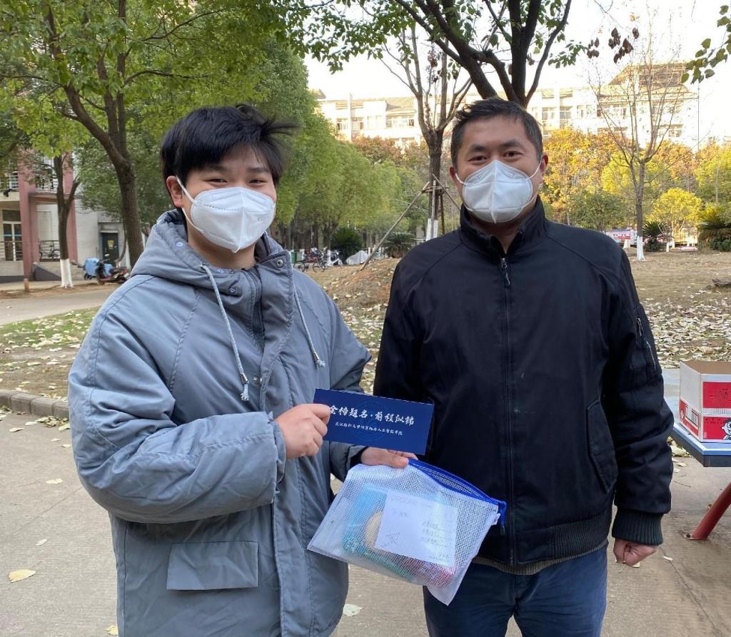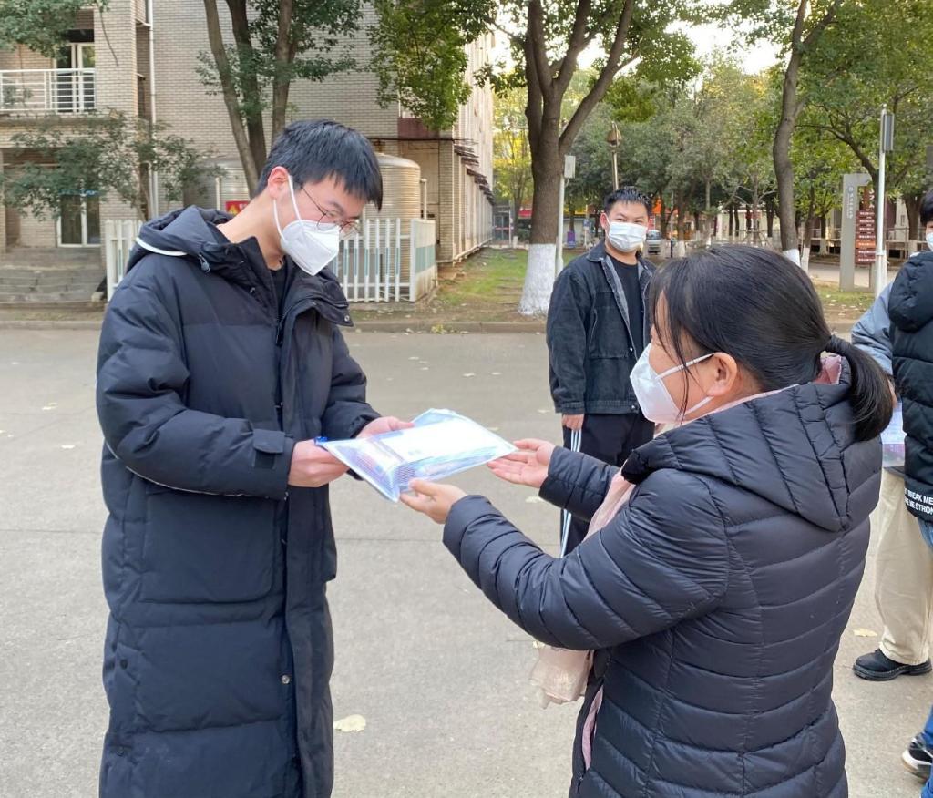 本次活动在五栋宿舍楼下开展,在活动现场,学院党委书记晏伟、院长胡新荣,副院长魏雄,副院长彭涛,党委副书记向涛,毕业生辅导员孙榜骏与学生亲切交流并为他们送上定制福袋。晏伟书记悉心询问了考研学生们身体情况和备考状态,并对他们刻苦学习、追求卓越的精神表示赞赏与肯定。胡新荣院长叮嘱同学们要调整好心理和身体状态,劳逸结合,充分利用好最后的复习时间,查漏补缺,保持优势,同时祝愿考研同学们马到成功、金榜题名。