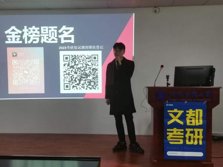 为进一步做好男同 考研学子的指导服务工作,3月20日下午,男同 在崇真楼(南楼)A4030会议室召开了2023届考研复试技巧及调剂指导讲座。此次讲座邀请了文都教育考研复试调剂指导专家杨诺老师和往届优秀研究生代表童逸阳同学担任主讲嘉宾。讲座由毕业生辅导员孙榜骏主持。