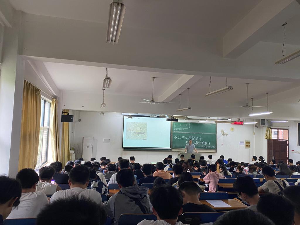 各年级辅导员首先播放了由中国井冈山干部学院姚玉珍、甘公荣、蔡军、王华生、袁建芳一行五人带来的《不忘初心牢记使命——井冈山精神代代传》互动访谈式“大思政课”录播影像,通过了解革命先辈们的光辉岁月,使同学们更加深刻领悟了革命先辈对革命事业的无限忠诚、对党的无限热爱和对家人的严格要求,深刻阐述了“坚定执着追理想,实事求是闯新路,艰苦奋斗攻难关,依靠群众求胜利”的井冈山精神。