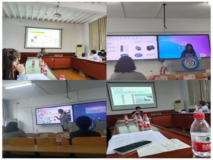 学生辛磊(左上)、周景(右上)、程靖尧(左下)和李东盛(右下)在“信息处理”和“颜色科学”分论坛做学术报告