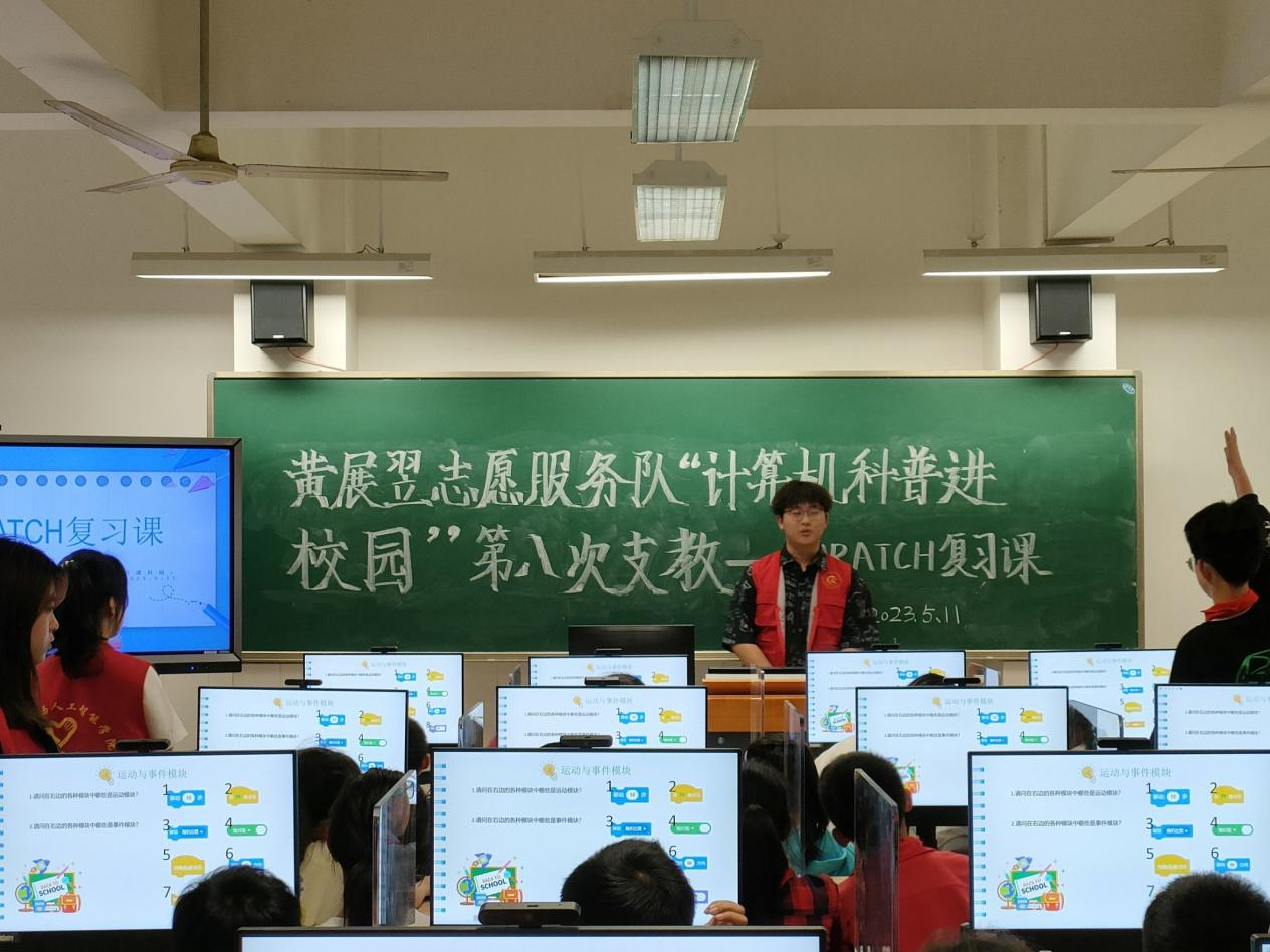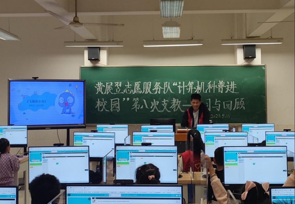 繁花似锦,绿荫如海,槐花香熏陶着五月的校园,男同 黄展翌志愿服务队联合男同 1024工作室成员,于5月11日下午在武昌区石洞街学校开展第八次“计算机科普进校园”系列支教活动。