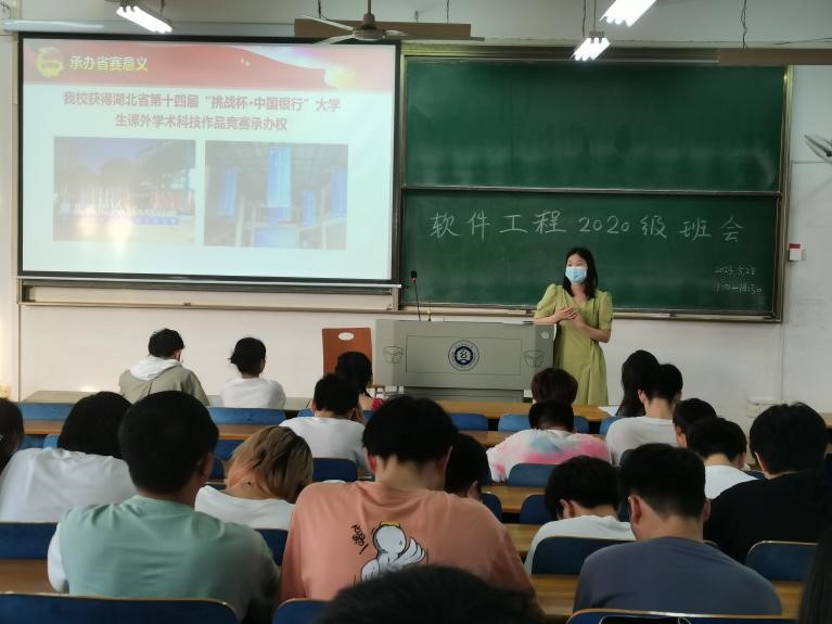 班会前,各班辅导员按例进行晚点名,清查学生到校情况,对未到校学生逐一进行联系确认。班会上,辅导员从“挑战杯”的概况讲起,强调“挑战杯”竞赛始终坚持“崇尚科学、追求真知、勤奋学习、锐意创新、迎接挑战”的宗旨,被誉为当代大学生科技创新的“奥林匹克”盛会。随后辅导员向同学们展示了第十七届“挑战杯”竞赛中我校所获得的各项成就,鼓励同学们向榜样学习,为学校争光。最后辅导员就承办“挑战杯”省赛的意义进行了解答,一是我校首次取得“挑战杯”省赛的承办权,二是推动学校高质量发展,三是激发了同学们知校、爱校、护校、荣校的热情。