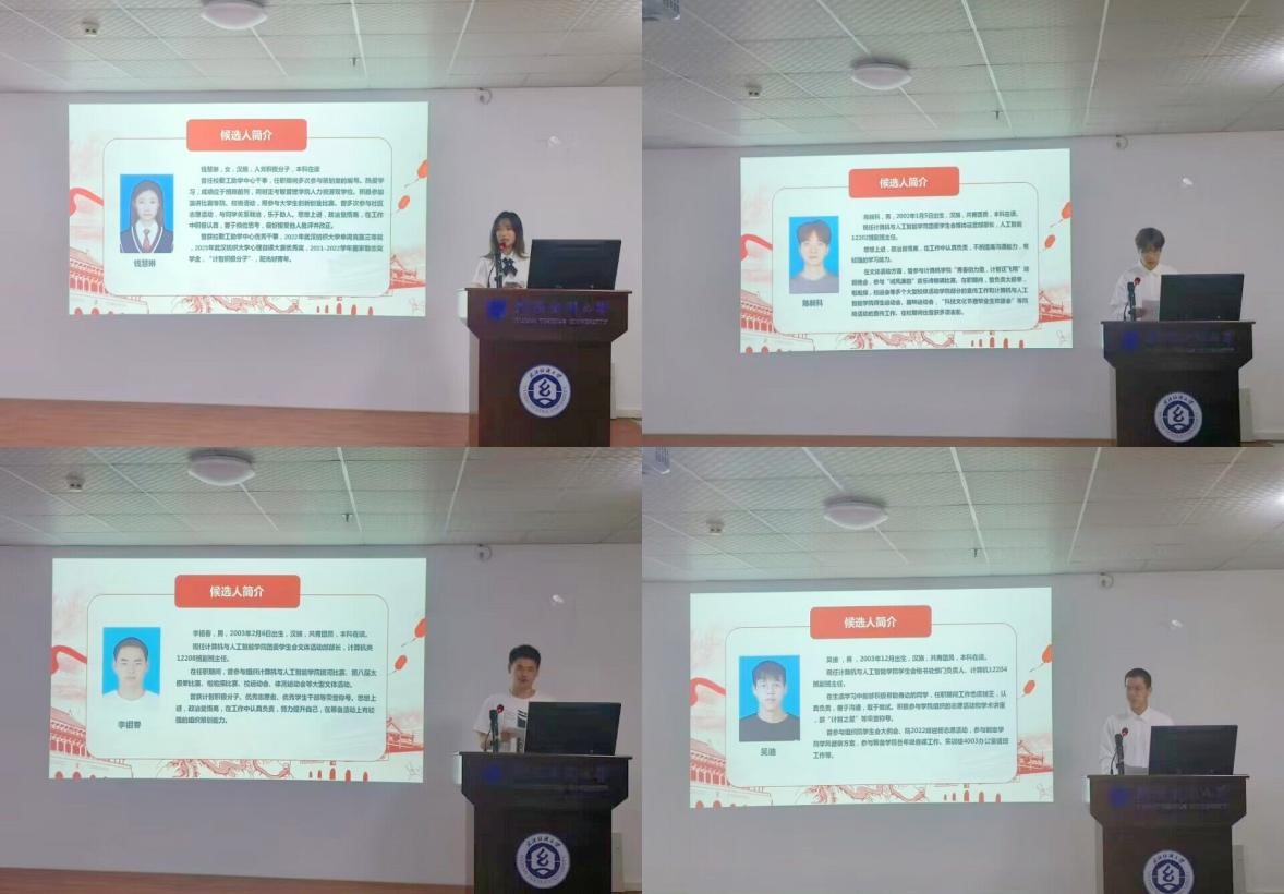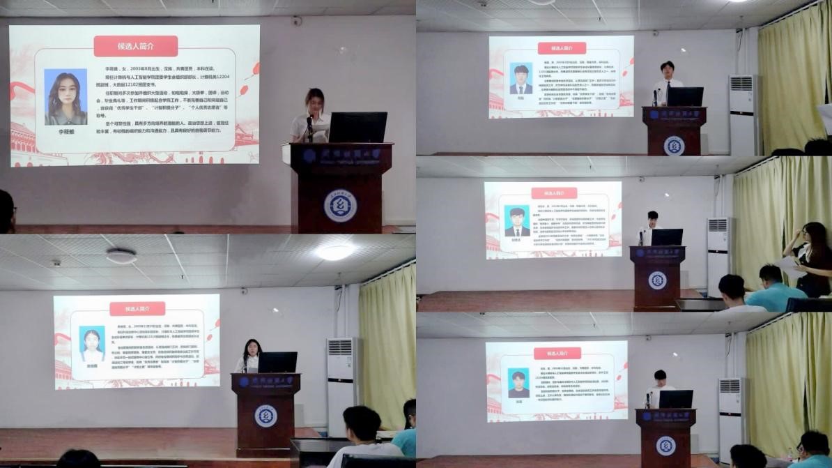 学生会换届竞选。经过候选人自主竞选发言,学生代表投票选举,大会最终产生共青团男同