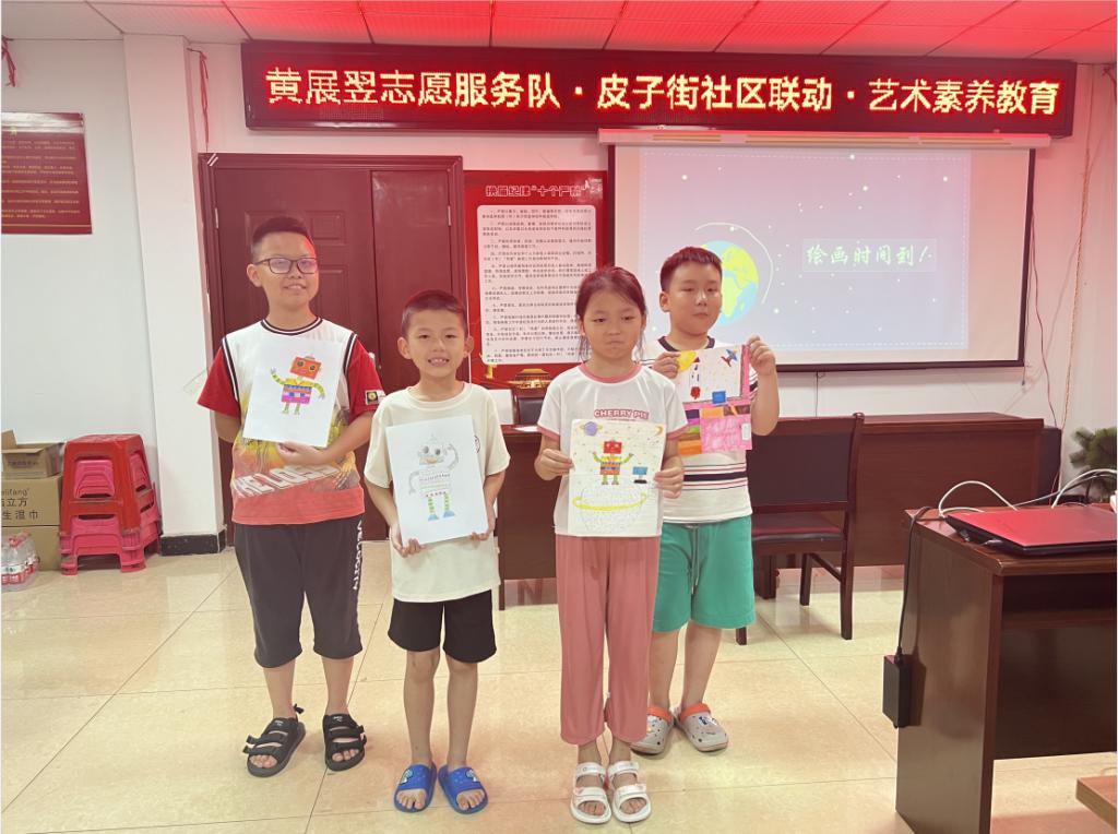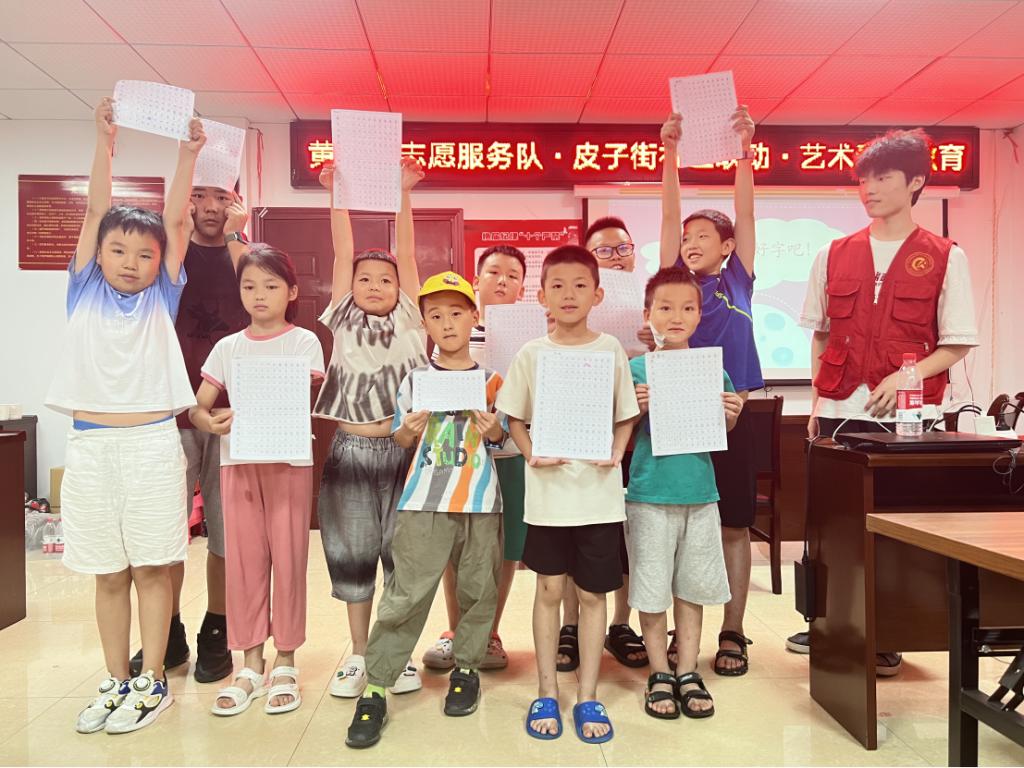 活动结束后,志愿者与同学们一起合影留念,纪念令人怀念的瞬间。“一个民族只有寄望青春、永葆青春,才能兴旺发达”,通过练字、绘画、艺术表演,促进了青少年德智体美劳的全面发展,开启了他们探索新事物的眼界,为美好未来埋下了种子。这次活动助力了孩子的全面成长,也展现了当代大学生的良好精神面貌和时代担当。黄展翌志愿服务队将持续开展志愿服务活动,蓄积坚韧之力,驰而不息向前进,为国家和社会的发展与进步贡献出青春力量!