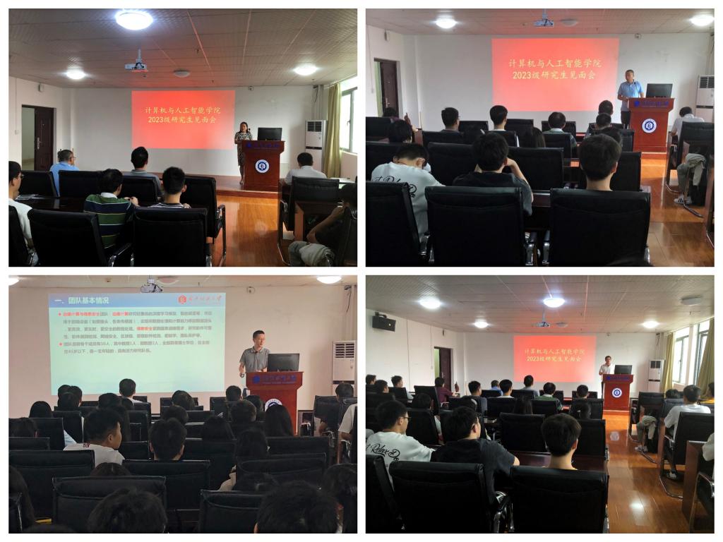 双选会上,何儒汉教授的跨媒体计算与数字孪生团队、潘雄教授的数据治理与智能时尚团队、姜明华教授的机器视觉与智能制造团队、胡新荣教授的移动感知与智能穿戴、自然语言处理与知识图谱团队、彭涛教授的边缘计算与信息安全团队分别做了详细的团队基本情况和研究方向介绍。会后,罗园老师也倡导研究生新生尽快确定导师,方便后续工作的开展。