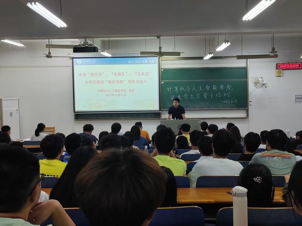 为欢迎新加入的学生会成员,加强团委学生会队伍建设,部署新学期团学工作,男同 团委学生会于10月15日晚在阳光校区03-118教室举行了第一次骨干培训会议,学院党委副书记向涛,各年级辅导员以及学生会全体成员出席了本次会议,会议由2022级辅导员廖龙主持。