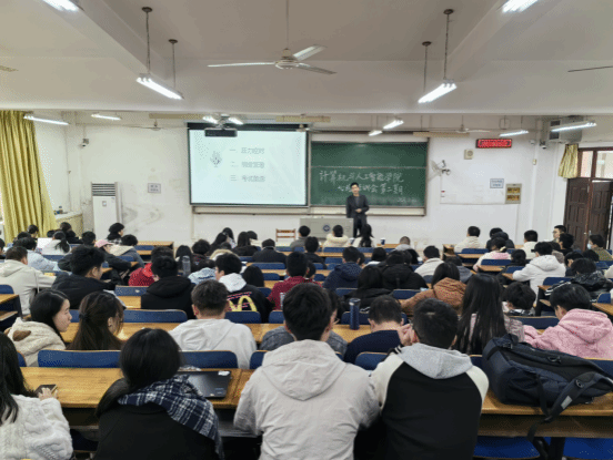刘三明首先引出话题,问同学们怎样理解压力?刘三明鼓励各班级心理委员与宿舍代表积极表达自己对压力的看法,存在哪些压力等。随后刘三明向同学们介绍了压力的正面效果和负面效果,引导大家正确使用压力来提升自身的效率。刘三明还为同学们分析了情绪的产生原理及如何察觉、管理情绪等,刘三明强调情绪本身并无好坏之分,要认识到我们的情绪,即使是那些让人不舒服的情绪,都是在告诉我们有一些事情需要给予关注。最后刘三明介绍了什么是焦虑,指出焦虑是一种能被任何人在任何情境下体验到的普遍情绪,提醒同学们焦虑在许多情况下都是有益的,学会运用焦虑能达到事半功倍的效果,并向同学们介绍了利用焦虑的小妙招。