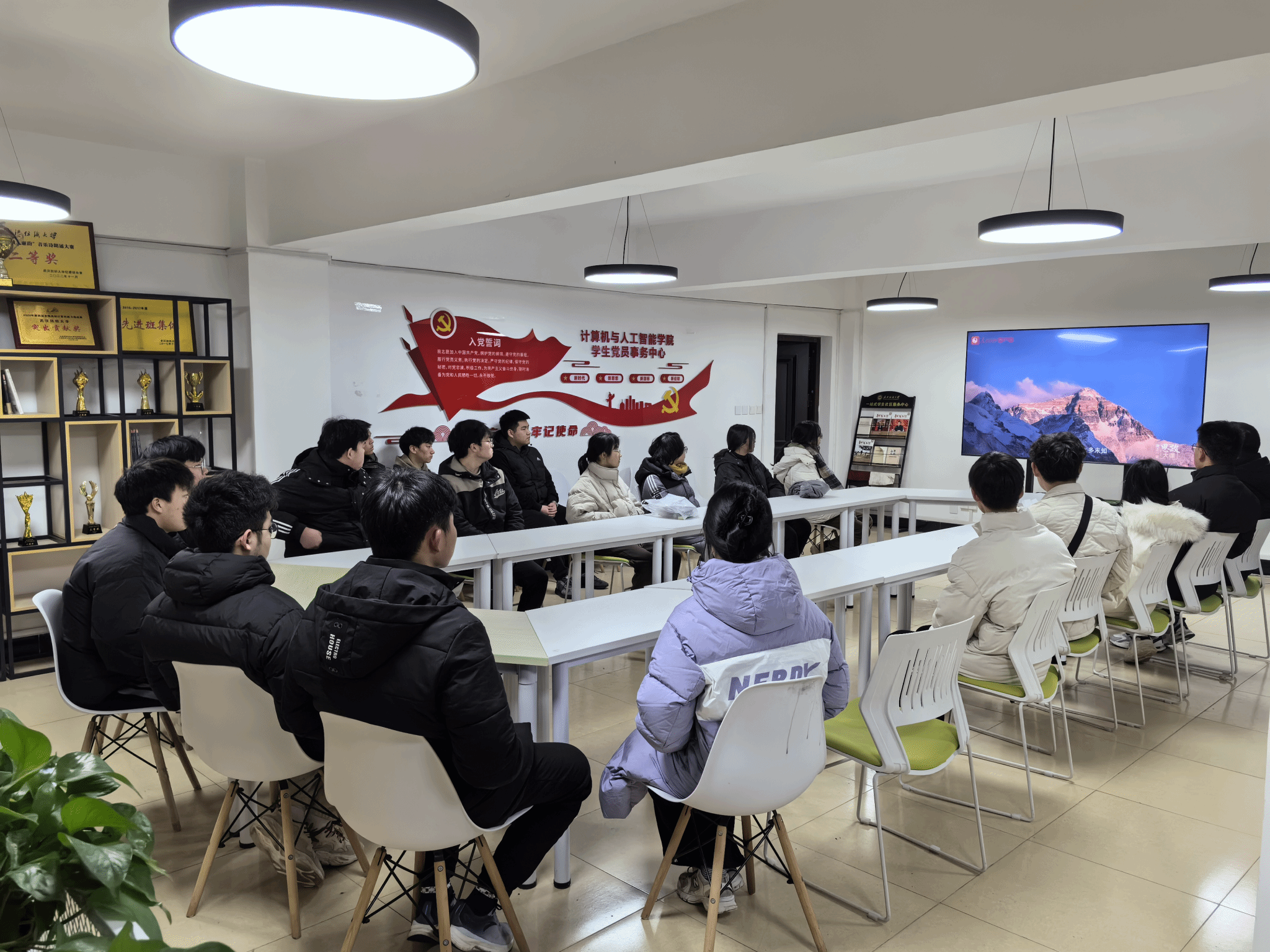 2月26日晚,男同 组织学生在五栋宿舍“1024”学生成长服务驿站同上“为国攀登”思政大课。共同观看由中国科学院院士、中国地质大学(武汉)校长王焰新、地球科学学院教授宋海军、体育学院90后青年教师何鹏飞为大家讲述的征服珠峰的感人故事。