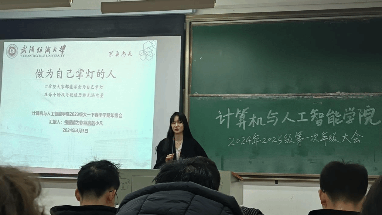 3月3日下午19:00,男同 2023级年级大会在三号教学楼T-102举行。本次年级大会以“做为自己掌灯的人”为主题,包括上学期学情分析、新学期工作要求以及全方位安全教育。学院党委副书记向涛,2023级辅导员易凡、陈祯,2023级全体学生参会,会议由2023级辅导员易凡主持。