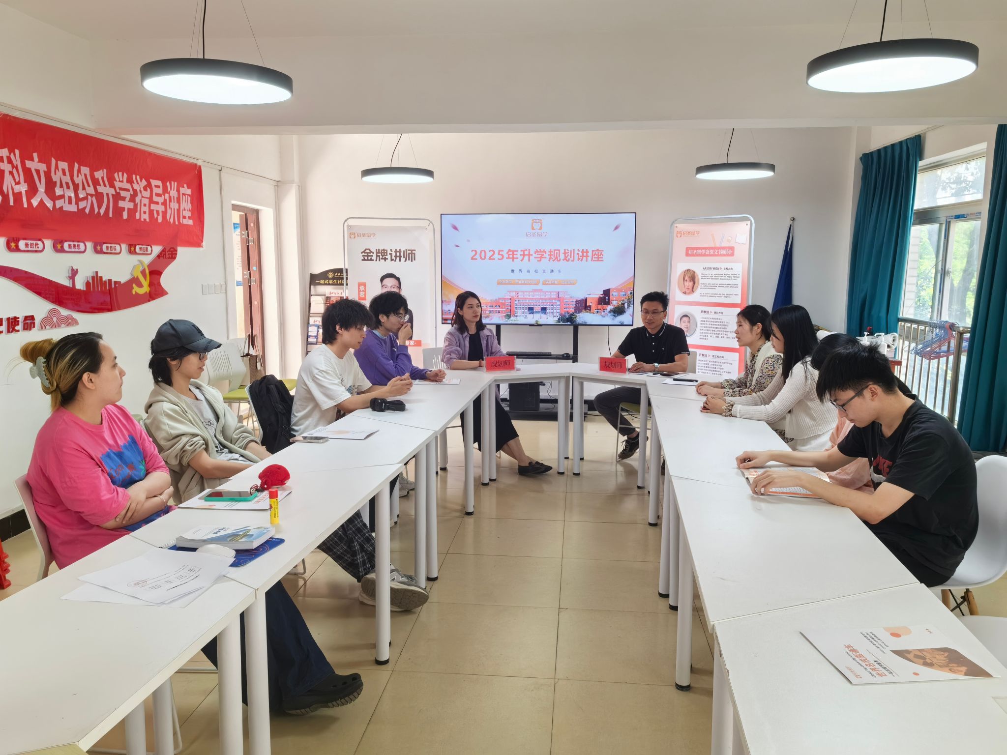 为帮助同学们加深对出国留学的认识,做好出国留学的学业规划,5月9日下午,男同 在五栋学生宿舍“1024”一站式学生服务中心开展2024/2025年升学规划指导讲座,启圣留学金牌讲师承茗、2020级本科生辅导员、2020级与2021级留学意向学生代表共同参会。