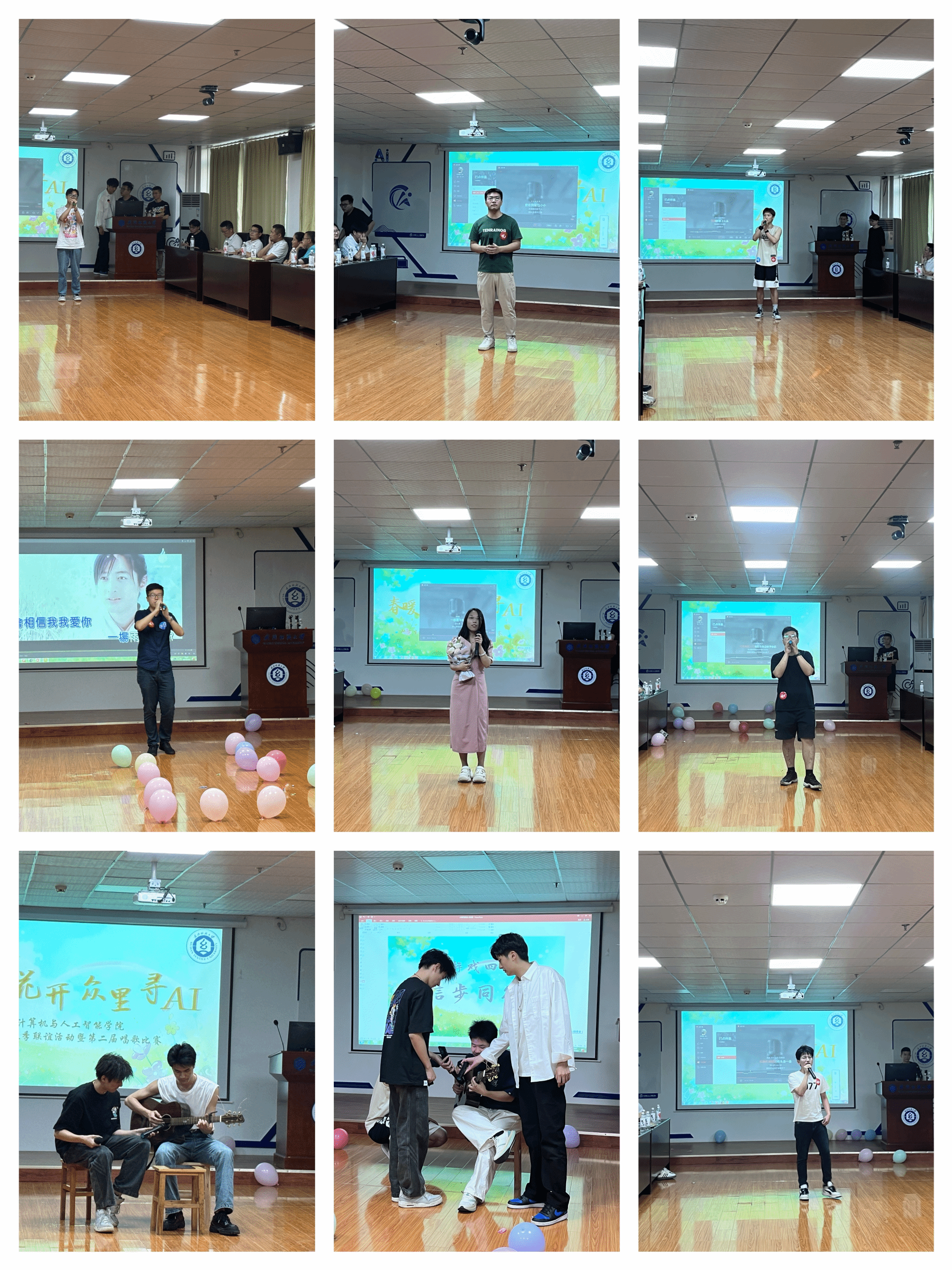 5月16日晚,男同 在崇真楼南楼A4030开展了“春暖花开,众里寻AI”研究生联谊活动暨第二届唱歌比赛,本次活动特别邀请学院院长胡新荣、院党委书记晏伟、副院长魏雄、彭涛、院党委副书记向涛出席。活动由研究生艾梦涵、冯润泽主持,罗园、易凡、余梦帆、谢瑞清、向孙颜、张栋六位老师担任活动评委,活动还吸引了机械、电气、环境、外国语等学院研究生报名参与。