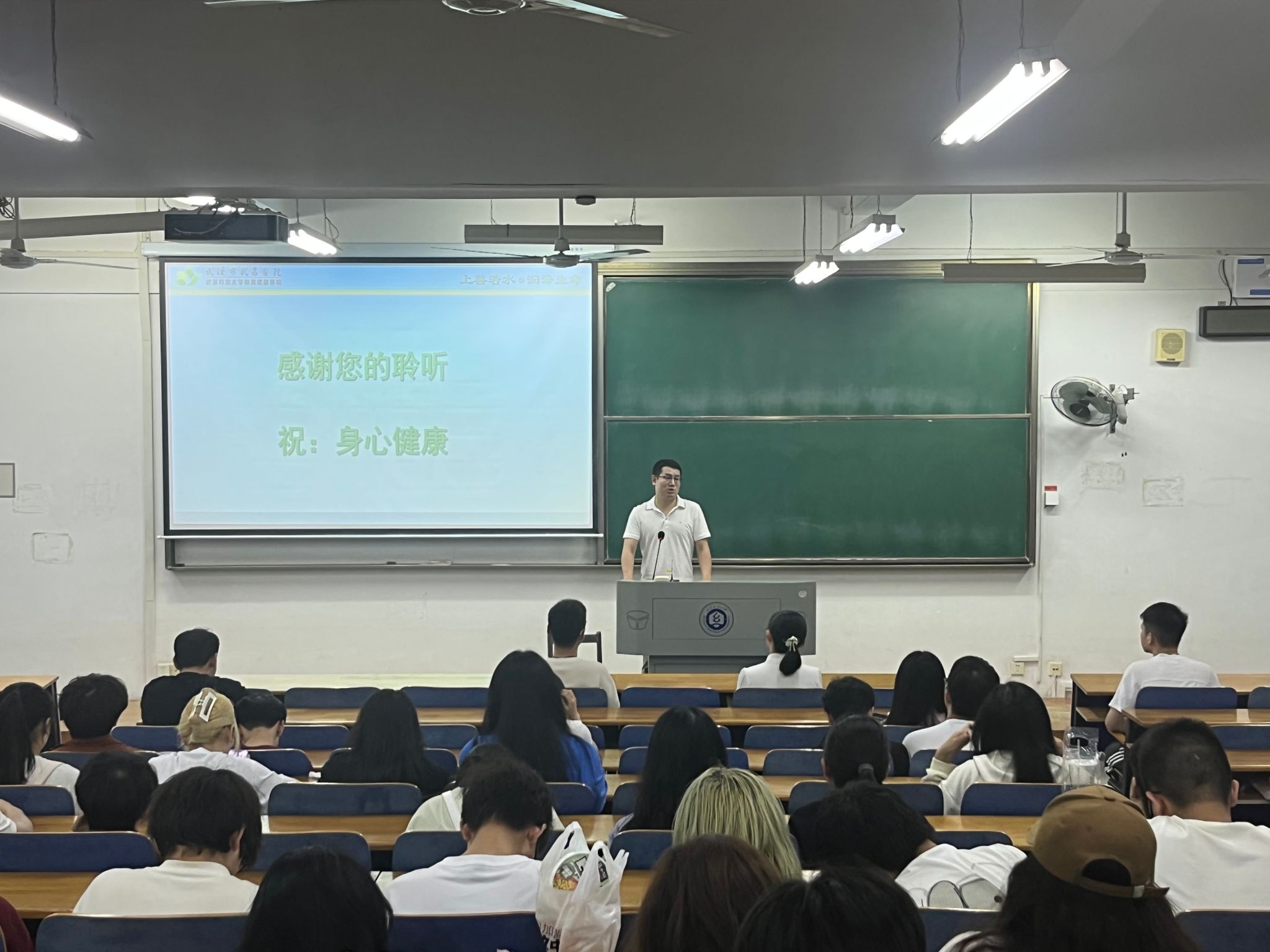 每年5月25日是全国大学生心理健康日,大学阶段是个体心理迅速走向成熟而又尚未完全成熟的一个过渡时期,是心理健康建设的关键时期。为进一步提高各班心理委员的专业技能,充分发挥学生骨干的作用,促进心理健康知识的广泛运用,5月22日下午,男同 在YG03-418教室开展“大学生常见心理疾病的识别专题”主题培训会。此次会议由武汉市武昌医院张立国医生,学院党委副书记向涛,学院本科生、研究生各年级辅导员,本科生、研究生心理委员及学生代表共同参加。