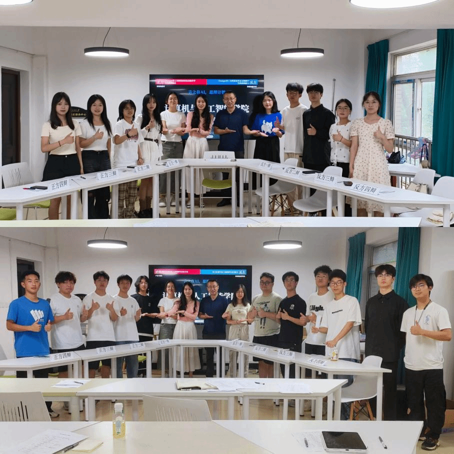 为提高男同 学生的思辨能力及语言表达能力,培养学生的创新能力及团队合作精神,5月26日下午,男同 在五栋一站式举行“言之有AI·思辩计智”辩论初赛,本次辩论赛评委由学院党委书记晏伟、辅导员余梦帆、陈祯、易凡及学生大众评委组成,辩题围绕当代大学生所关注的时事热点展开,共有来自2023级八支本科生队伍参赛。